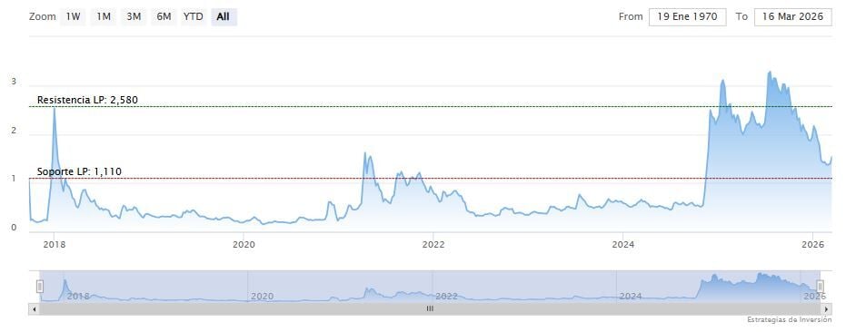 El soporte a mediano y largo plazo se encuentra en los 1.11 dólares. Mientras, los indicadores de Ei se muestran mixtos.