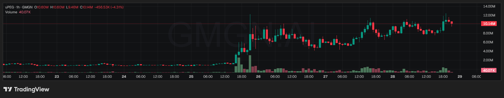 Según datos de GMGN, la capitalización de mercado de uPEG superó brevemente los 12 millones de dólares, alcanzando un máximo histórico.