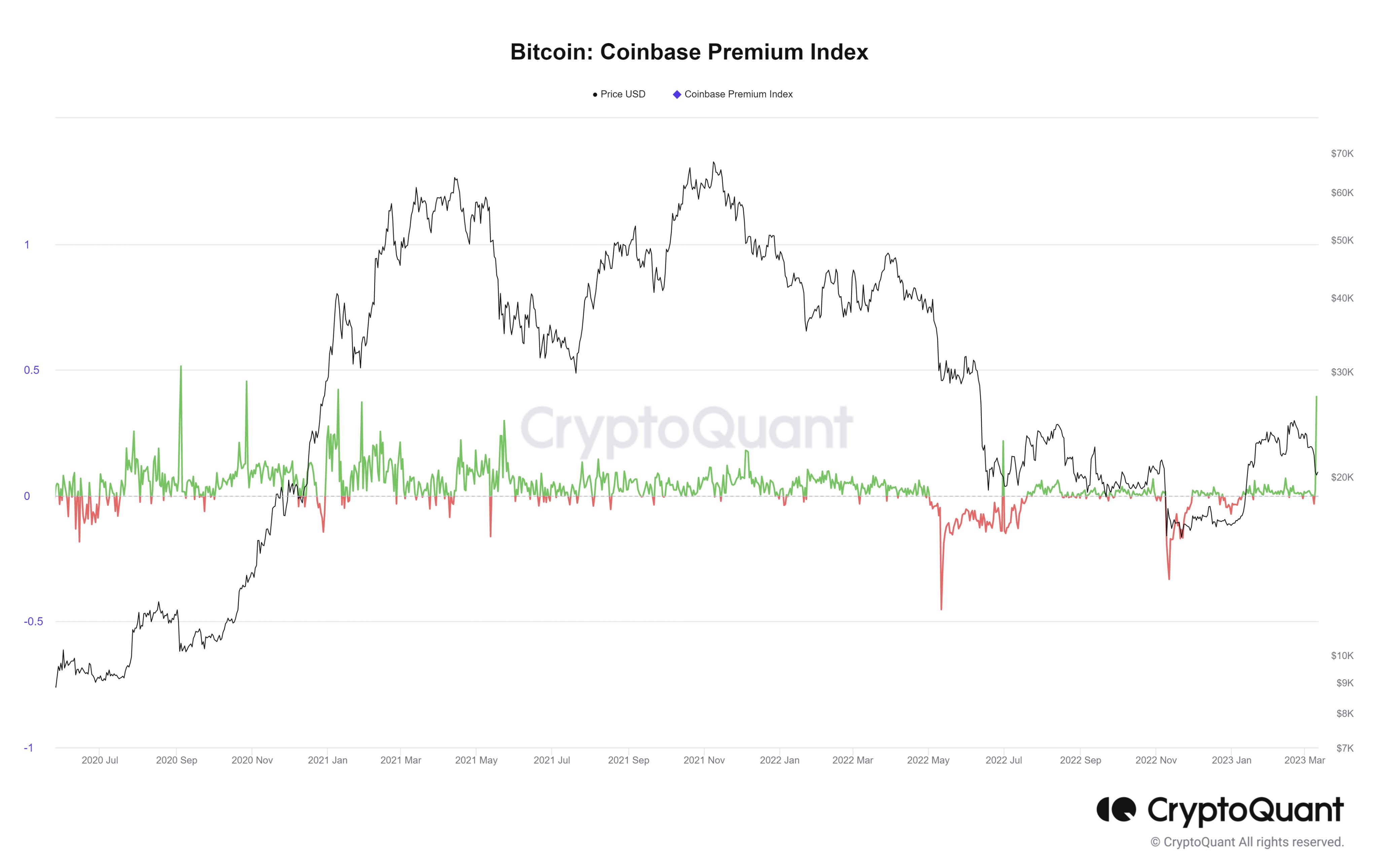 Precio de Bitcoin yotiene una tendencia alcista ya que cotiza a $ 300 producto de más alta calidad. on Coinbase ahora mismo. Coinbase Premium Index para Bitcoin ha alcanzado un máximo de 26 meses.