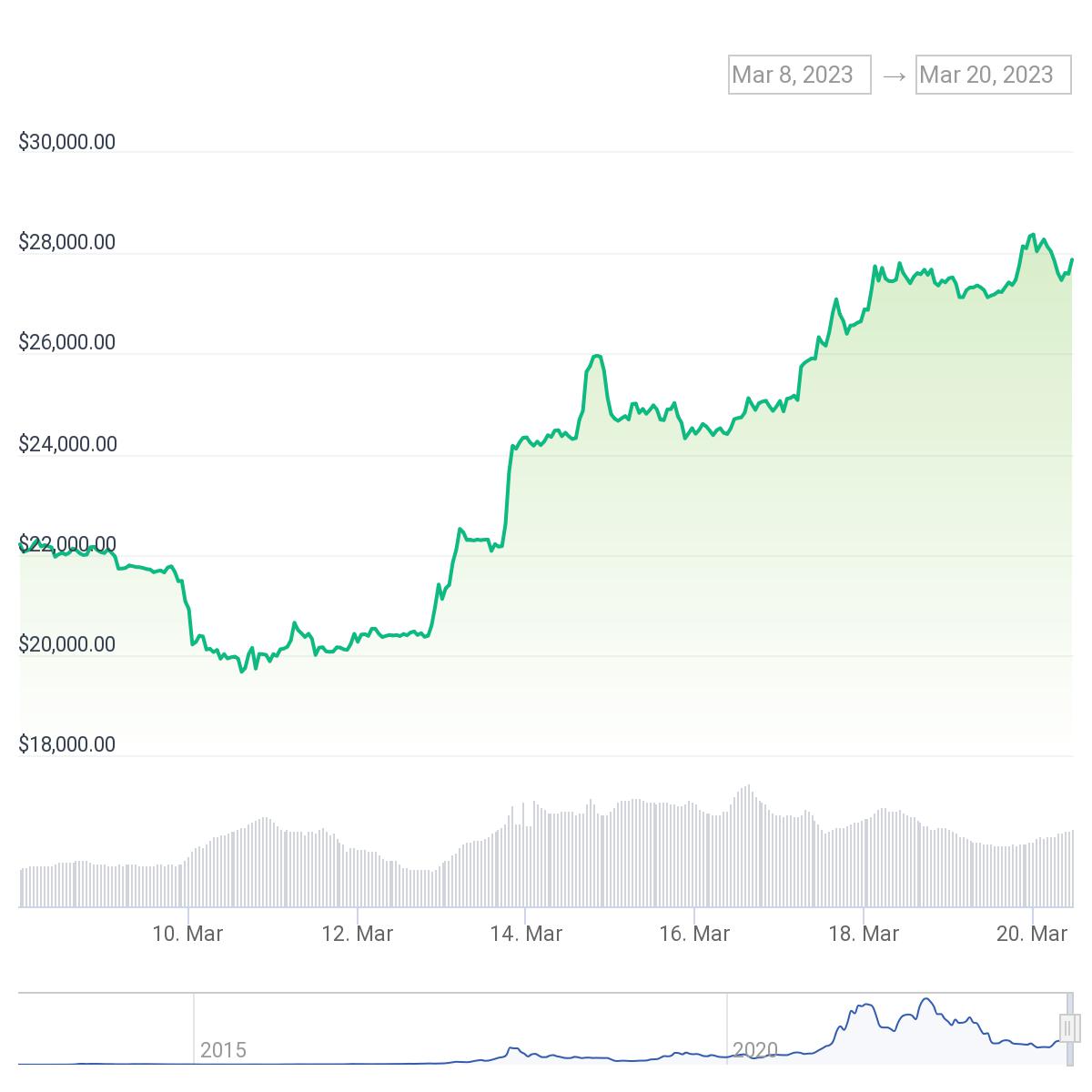 Otros, sin embargo, fueron más comedidos. BTC y ETH empezaron a caer el 10 de marzo y la primera parte de ese fin de semana, señaló Abraham. "Si el gobierno de Estados Unidos no hubiera intervenido para respaldar a los depositantes en Estados Unidos, y HSBC no hubiera comprado el banco del Reino Unido, probablemente habría habido un dolor significativo en todo el sector de las criptomonedas cuando los mercados abrieron de nuevo el lunes [13 de marzo]".
