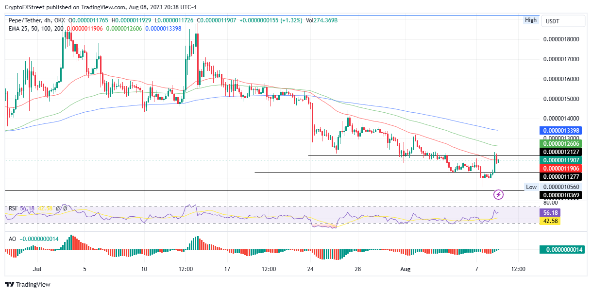 - Sin embargo, $PEPE debe registrar un cierre de velas de 4 horas por encima de 0.000001362$ para confirmar la tendencia alcista.