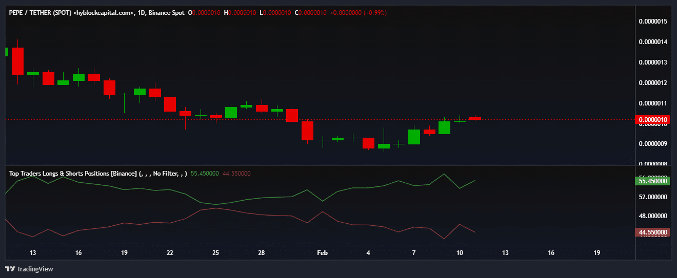 El número de posiciones de ballenas que apuestan por el aumento de precio de Pepe aumentó significativamente durante la semana pasada, según detectó AMBCrypto utilizando los datos de Hyblock Capital.