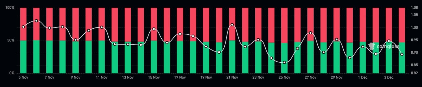En el momento de redactar este artículo, la relación entre posiciones largas y cortas de SOL se situaba en 0,89, lo que subrayaba un predominio bajista. Las posiciones cortas representan el 52 % del mercado, lo que indica escepticismo respecto del impulso alcista sostenido.