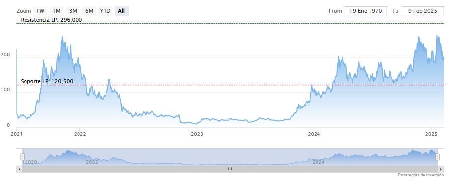 La resistencia a mediano y largo plazo se encuentra en los 296 dólares. Mientras, los indicadores de Ei se muestran prácticamente bajistas.