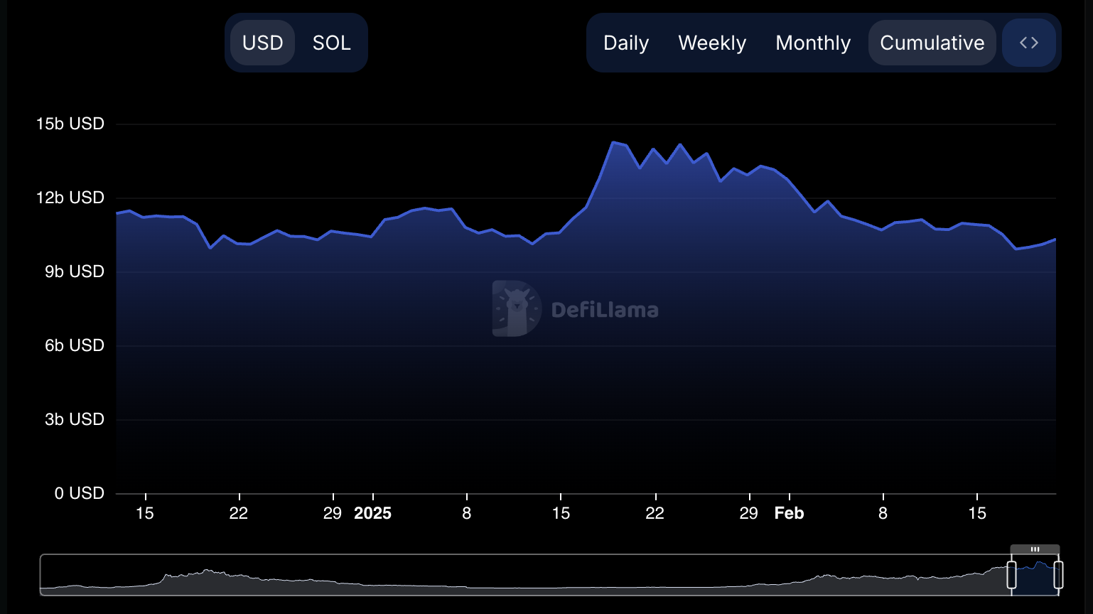 A pesar de este rebote, el TVL sigue estando casi un 30% por debajo de los 14,2 mil millones de dólares del 18 de enero, reflejando una disminución en la confianza de los inversores.