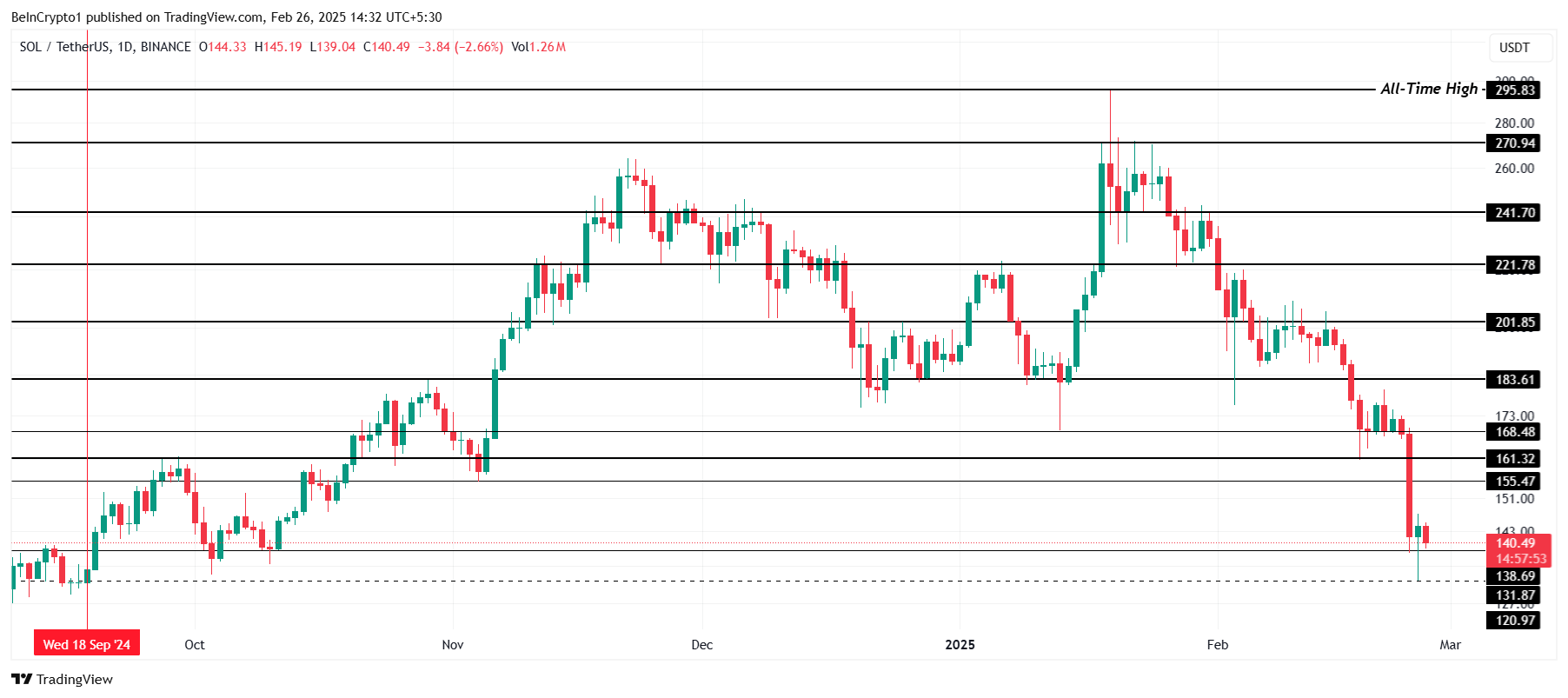 Solana se encuentra actualmente negociando a 140 dólares, manteniéndose por encima del nivel de soporte crucial de 138 dólares.