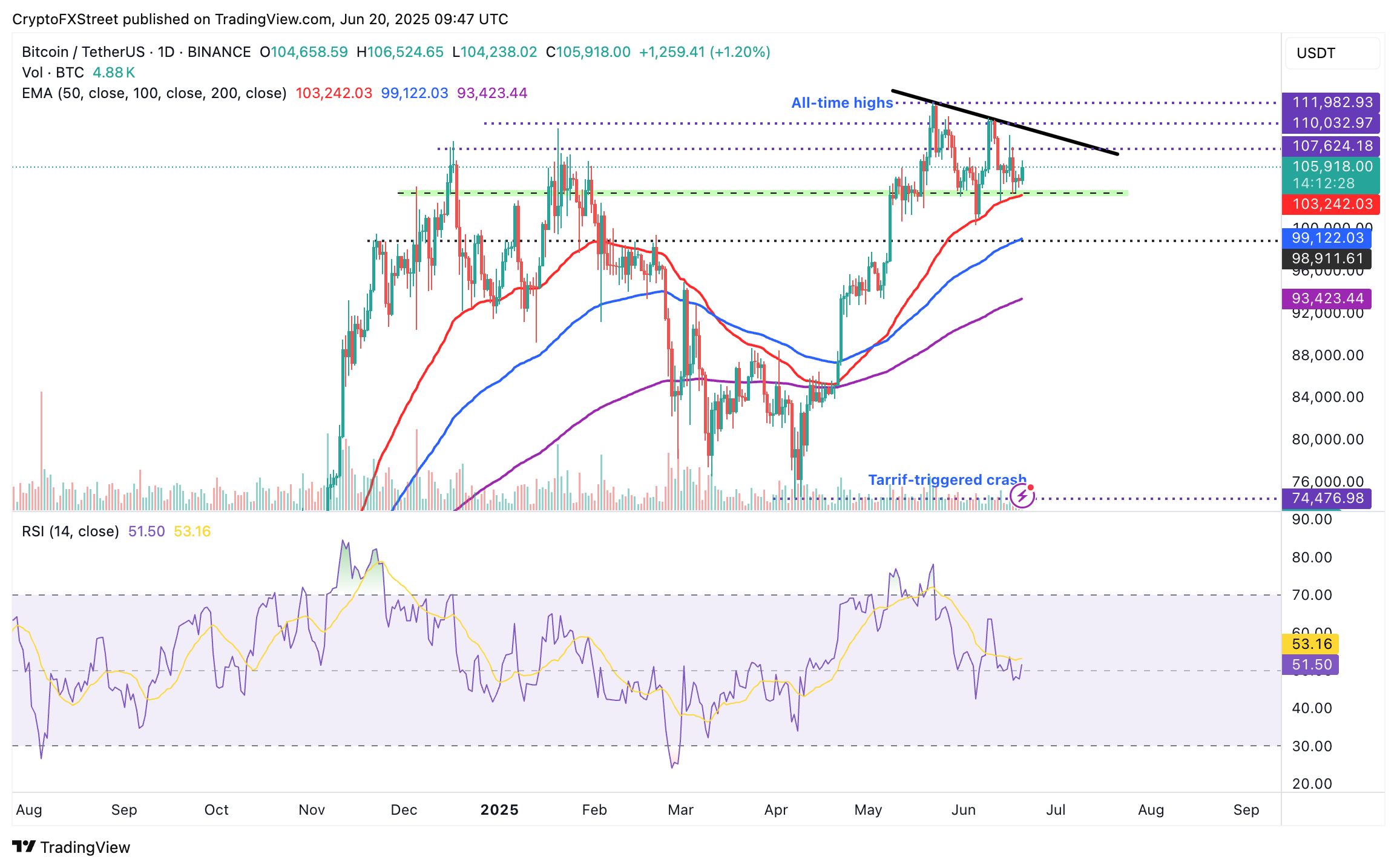 - Los toros del Bitcoin se intensifican, empujando el precio por encima de 106.000$, mientras Trump dijo que retrasaría su decisión sobre lanzar ataques a Irán por hasta dos semanas.