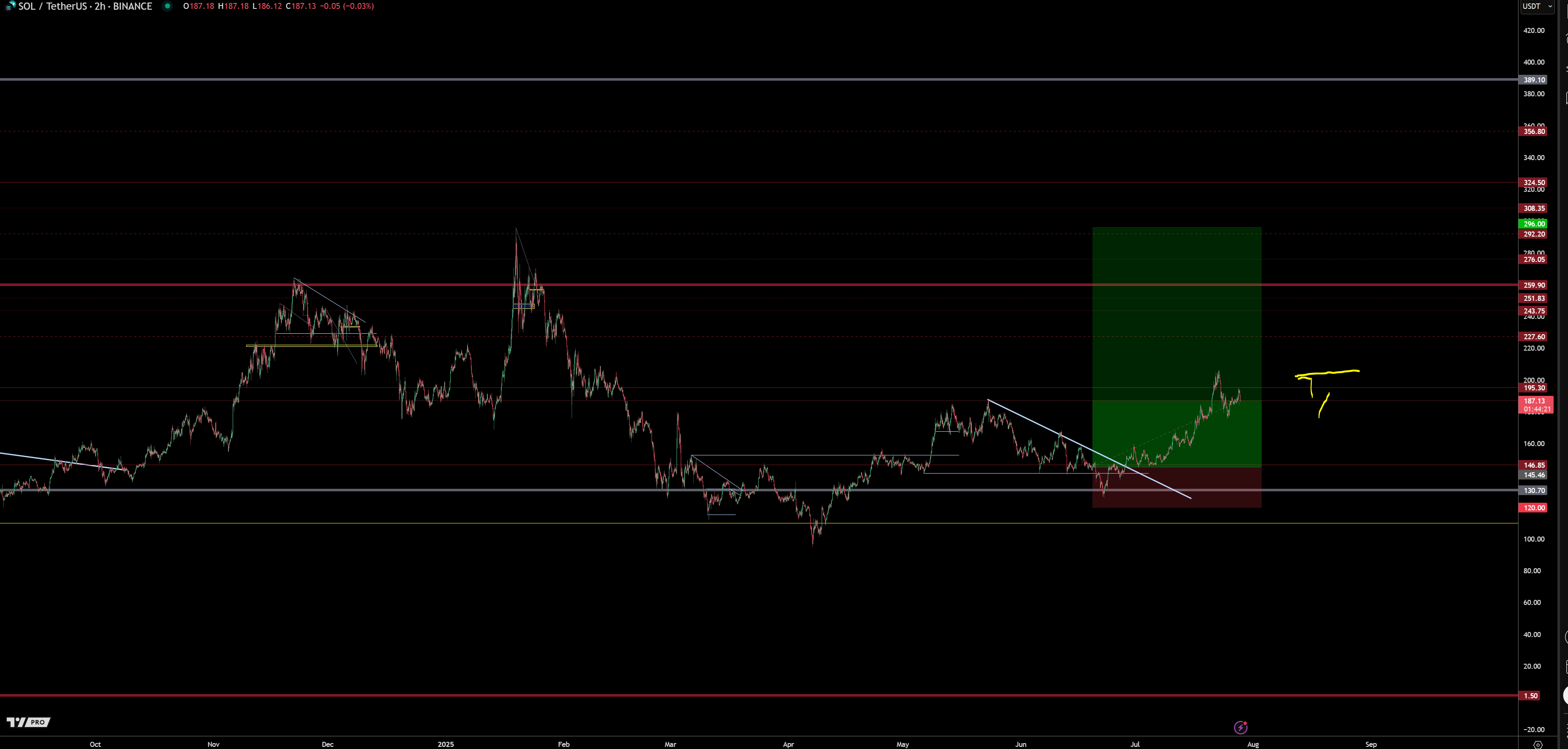 - Solana podría alcanzar $512 si supera $195, según TraderSZ.