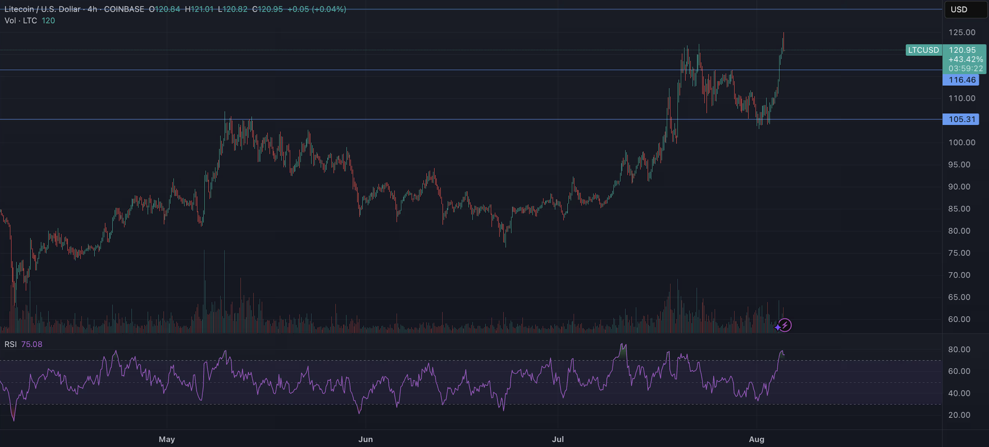 - Indicadores técnicos sugieren oportunidad de alza continuada para Litecoin.