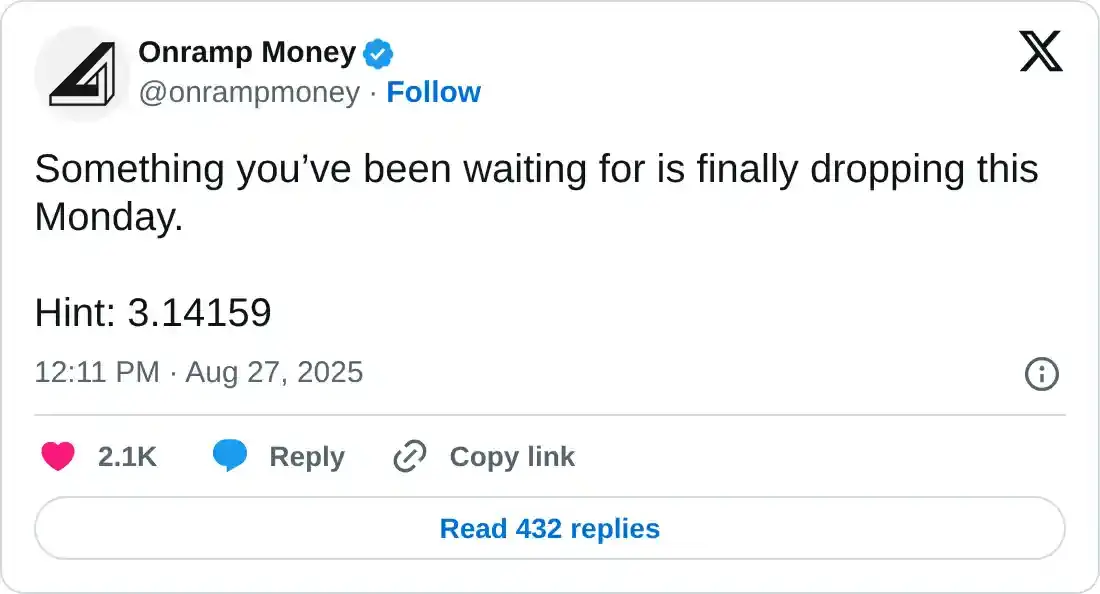 Vale la pena mencionar que Onramp Money ha insinuado una posible integración de Pi Network el 1 de septiembre. Las pistas mencionan "3.14159", que son los primeros seis dígitos de Pi. En paralelo al lanzamiento de Linux, la pista de Onramp Money alimenta la anticipación de la activación de la red principal.