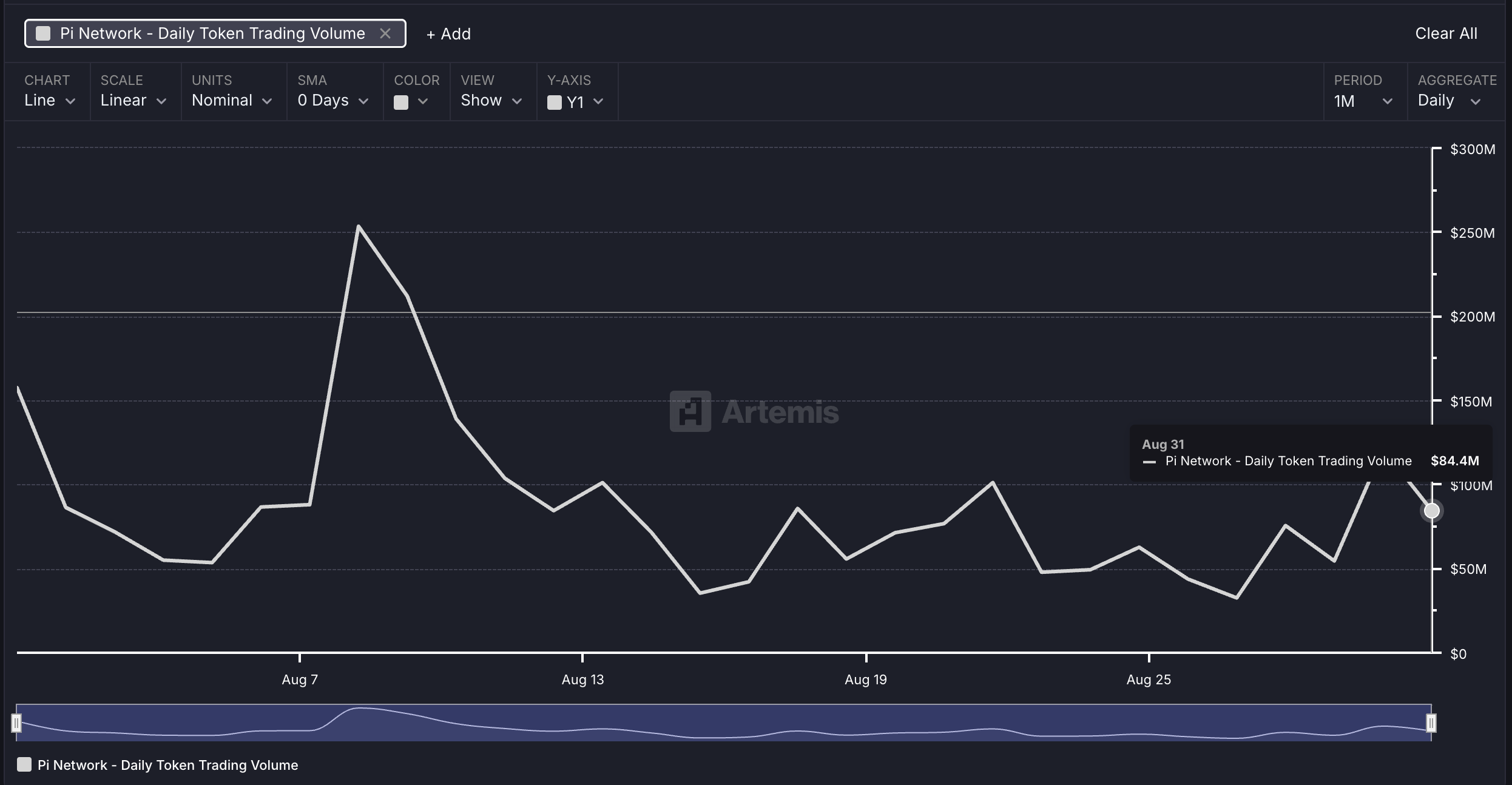 La gran salida indica un aumento en los retiros de los CEXs, señalando confianza entre los operadores. Aún así, los datos de Artemis sobre el volumen diario de comercio de tokens PI sugieren un posible estancamiento entre 50 millones de dólares y 100 millones de dólares desde mediados de agosto.