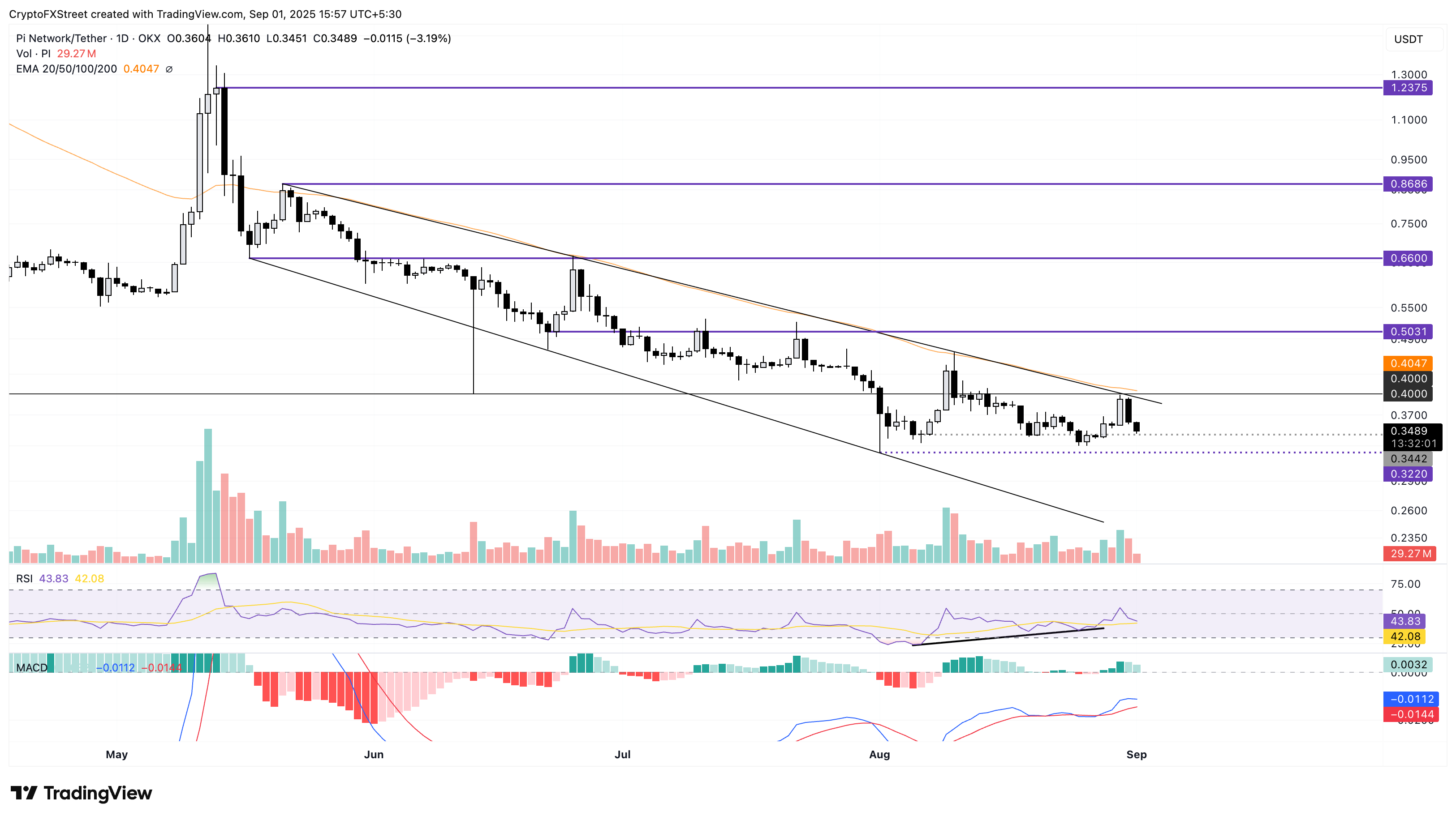 La recuperación efímera de Pi Network en la última semana alcanzó un pico en la cifra redonda de 0.4000$ el sábado. El token PI revirtió un 8% el domingo, extendiendo aún más la tendencia a la baja en un 3% hasta ahora el lunes.