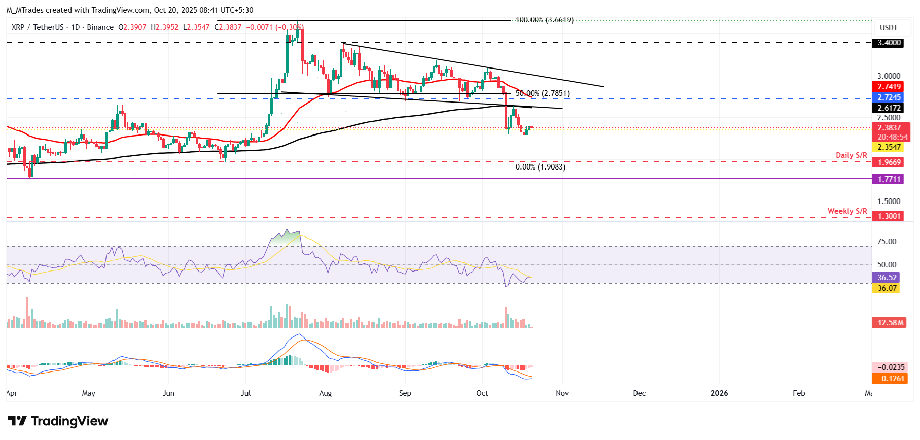 Si el XRP continúa su tendencia a la baja, podría extender la caída hacia el siguiente soporte diario en 1.96 $.