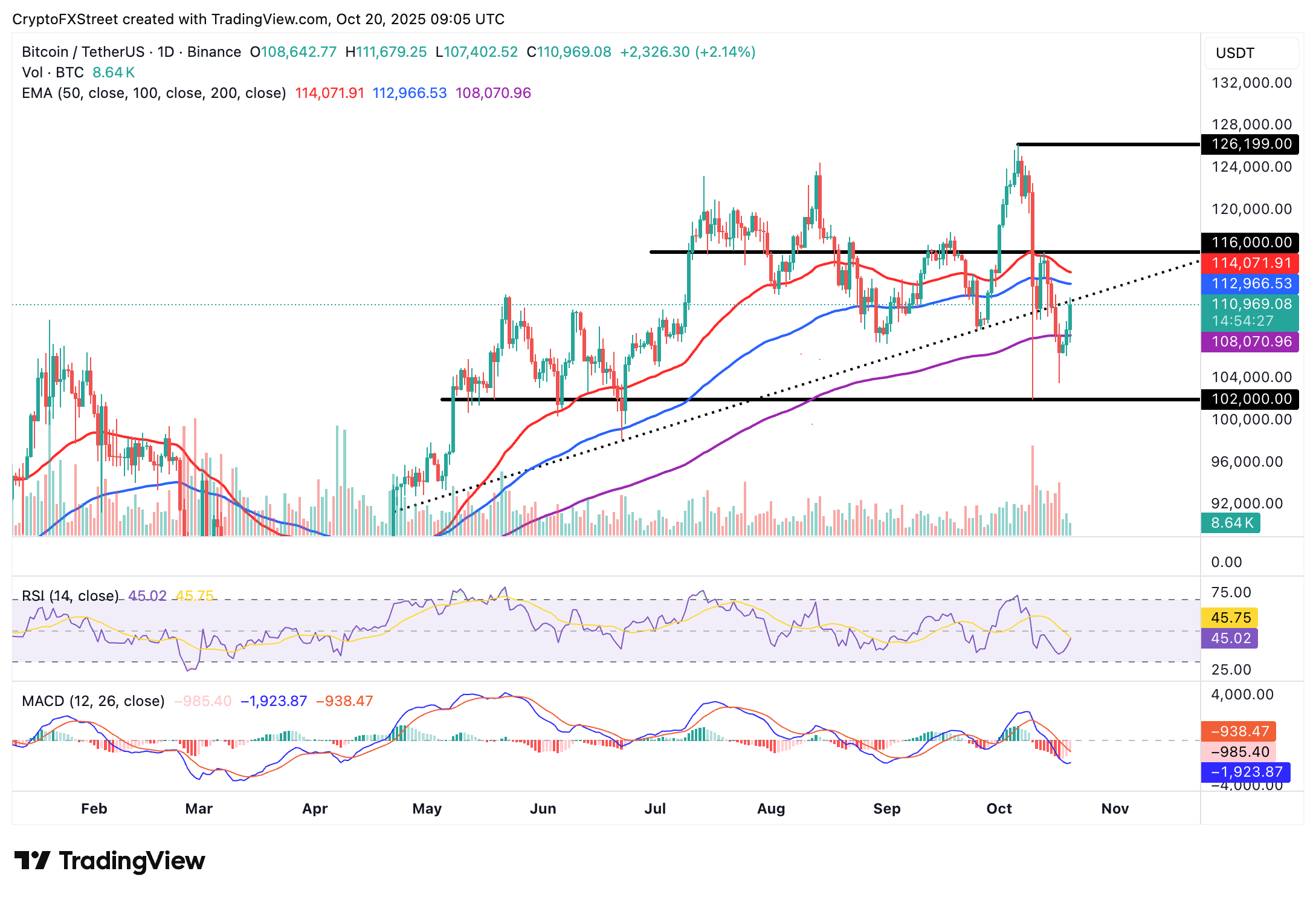 El Bitcoin (BTC) extiende su recuperación cotizando por encima de 111.000 $ el lunes. El rebote, reflejado en todo el mercado de criptomonedas, sigue a la volatilidad de la semana pasada, que vio el precio del BTC corregir a 103.528 $ el viernes.