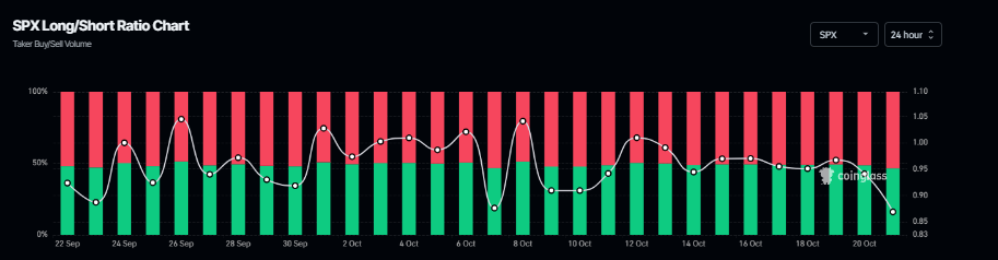 Otro métrico de derivados que fortalece la tesis bajista es la relación larga-corta de CoinGlass para SPX en 0.86 el martes, el nivel más bajo en más de un mes, aumentando las apuestas bajistas entre los operadores.