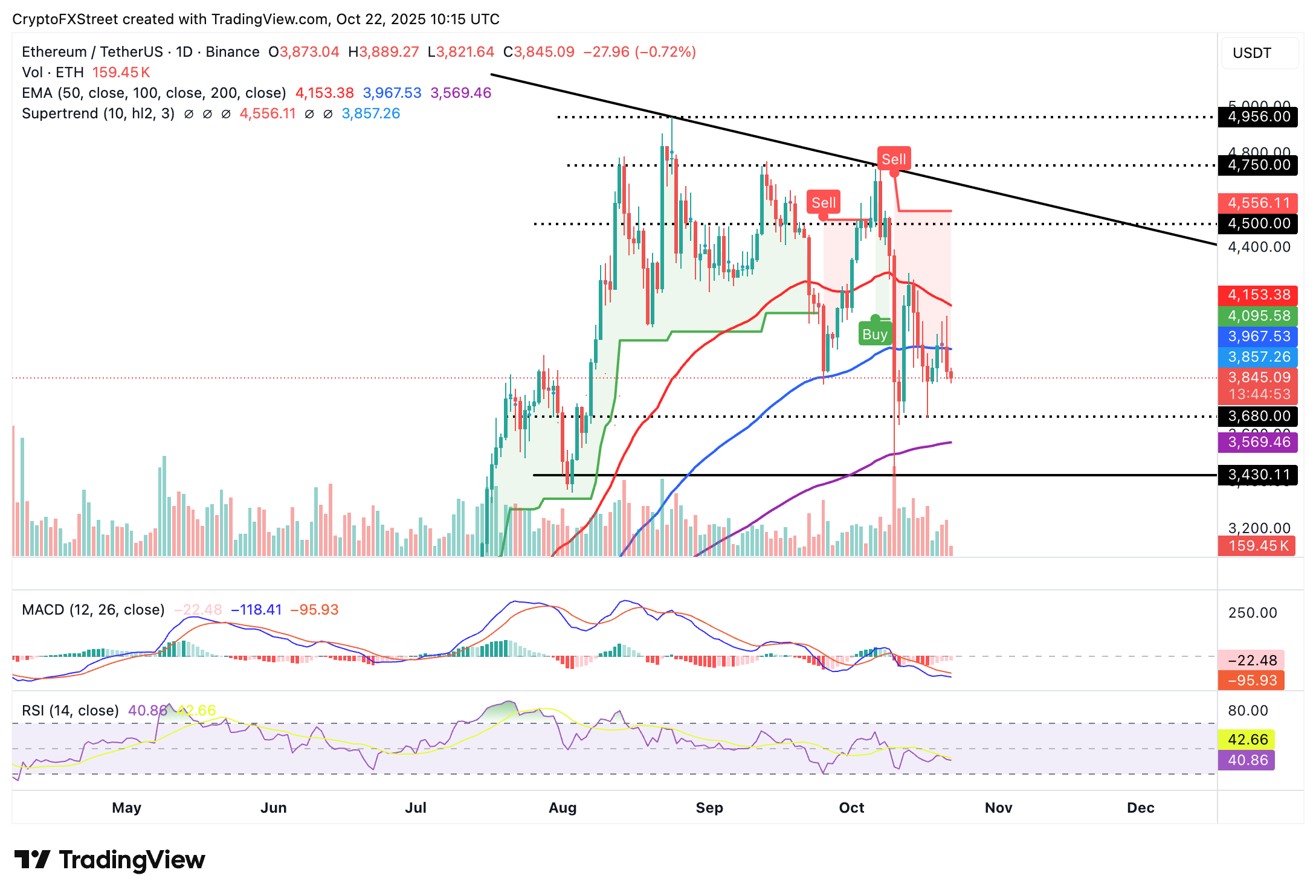 Los vendedores parecen tener la ventaja, citando una señal de venta del MACD activada el 10 de octubre y un Índice de Fuerza Relativa (RSI) en tendencia a la baja por debajo del nivel neutral de 50, lo que indica que el impulso bajista está aumentando.