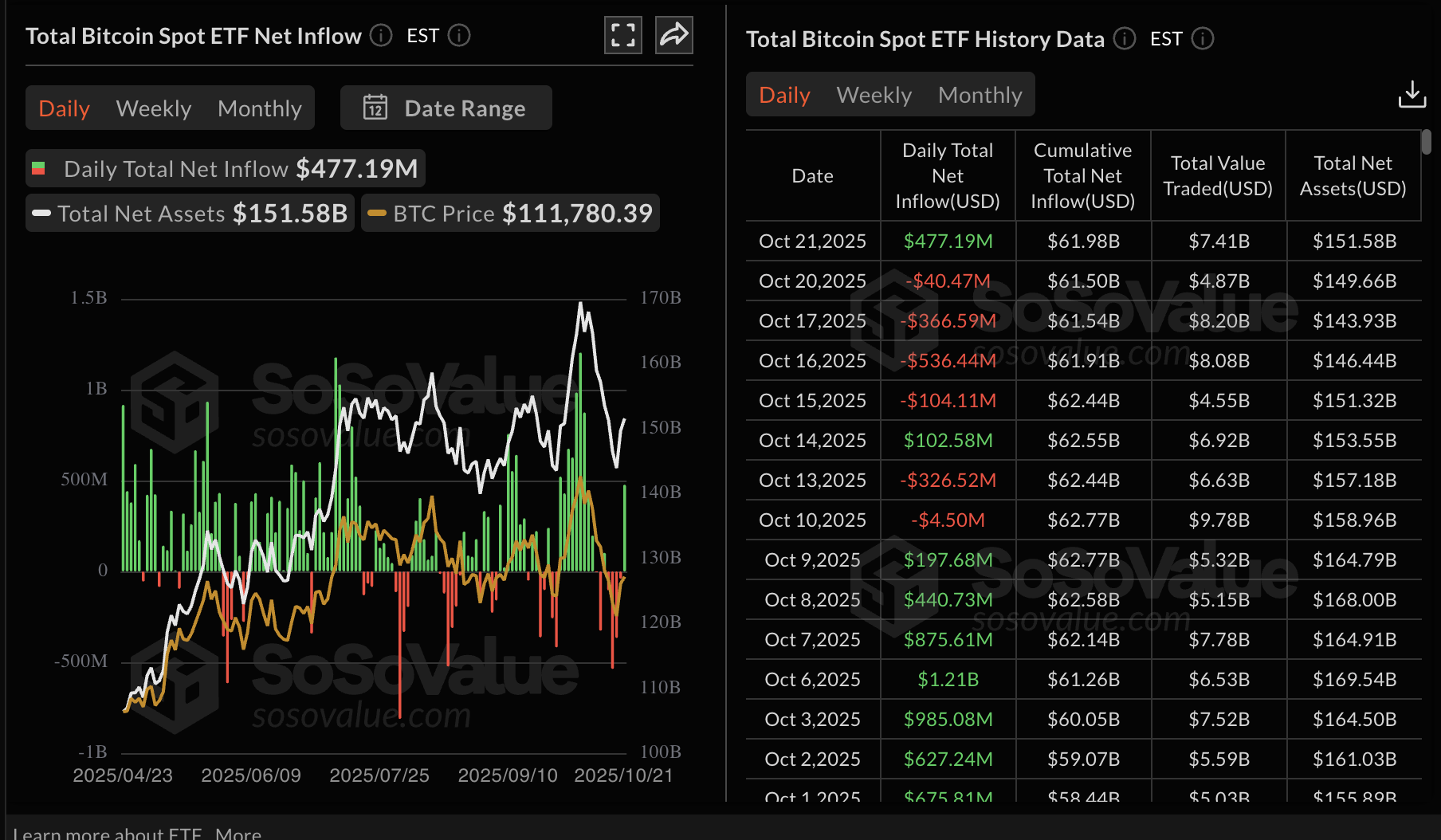 Estadísticas de ETF de Bitcoin | Fuente: SoSoValue