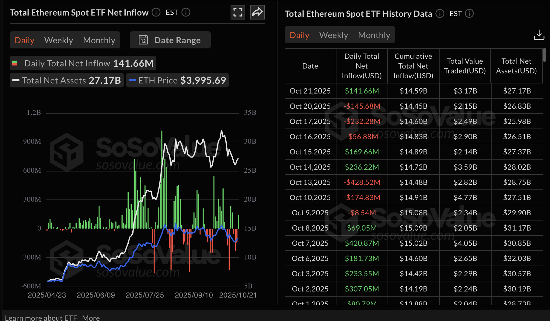 Estadísticas de ETF de Ethereum | Fuente: SoSoValue