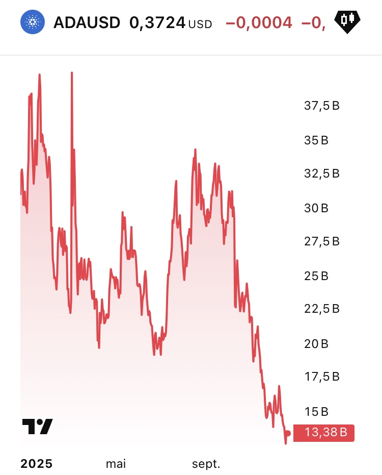 - Cardano vio caer su capitalización un 64 % en 2025, pasando de 39 a 14 mil millones de dólares.