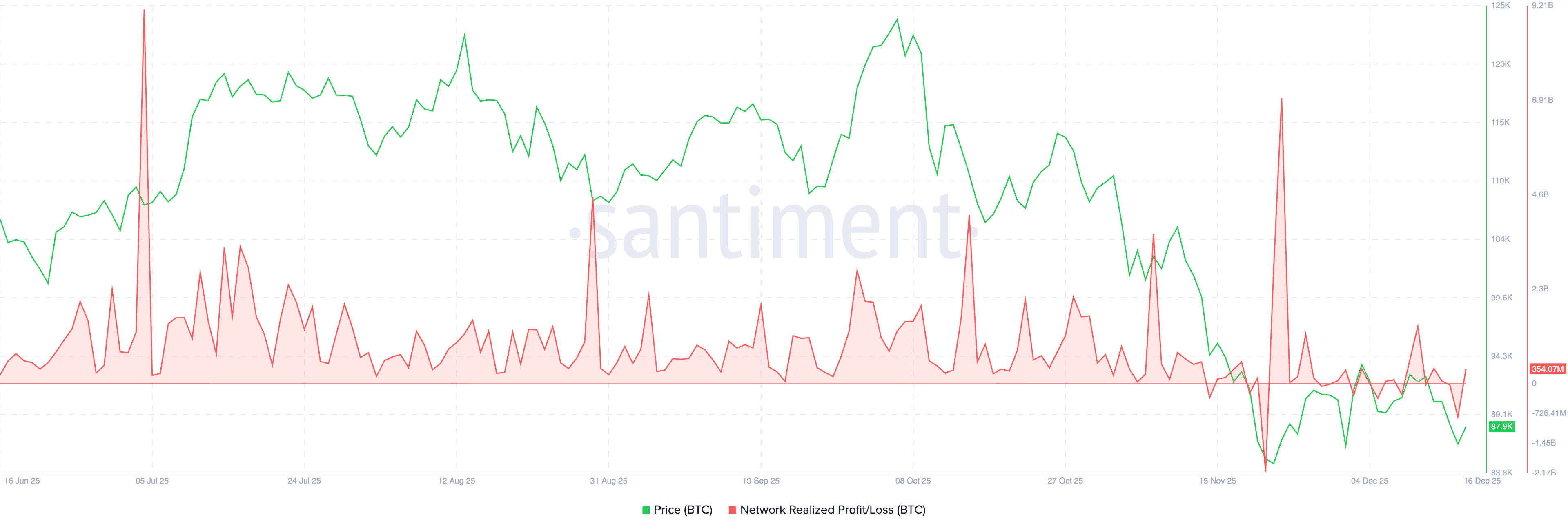 Precio del Bitcoin y beneficio/pérdida realizada en la red | Fuente: Santiment