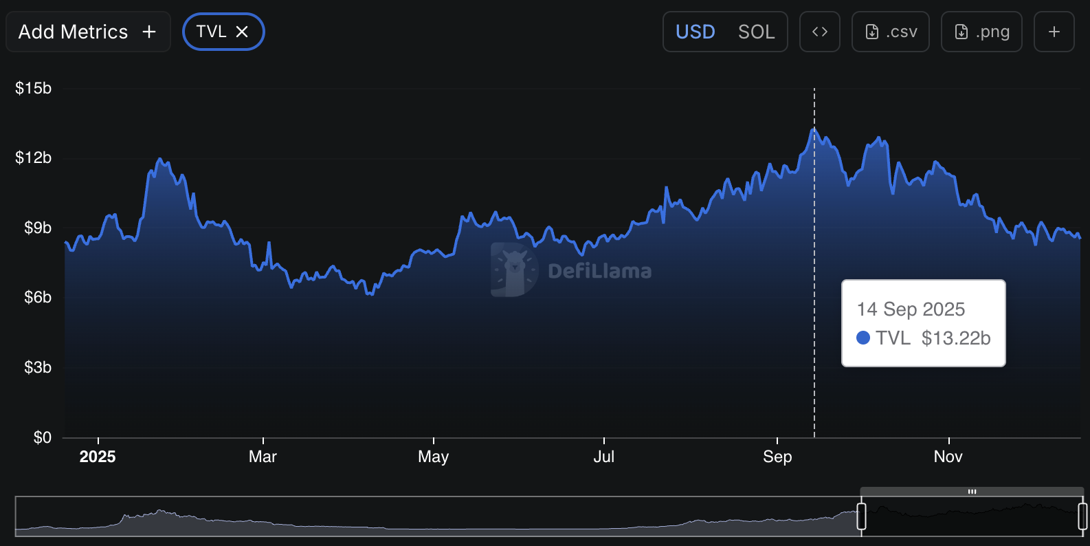 El Valor Total Bloqueado (TVL) es de 8.510 millones de dólares, cerca del número al comienzo de 2025. Según los anuncios, este número podría crecer, potencialmente poniendo a prueba el pico de 2025 de 13.000 millones de dólares y más allá.
