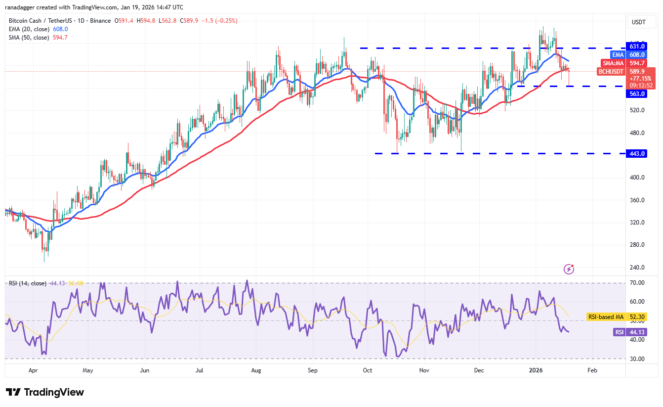 Bitcoin Cash (BCH) cerró por debajo de la SMA de 50 días (USD 594) el sábado, lo que indica que los bajistas están intentando tomar el control.