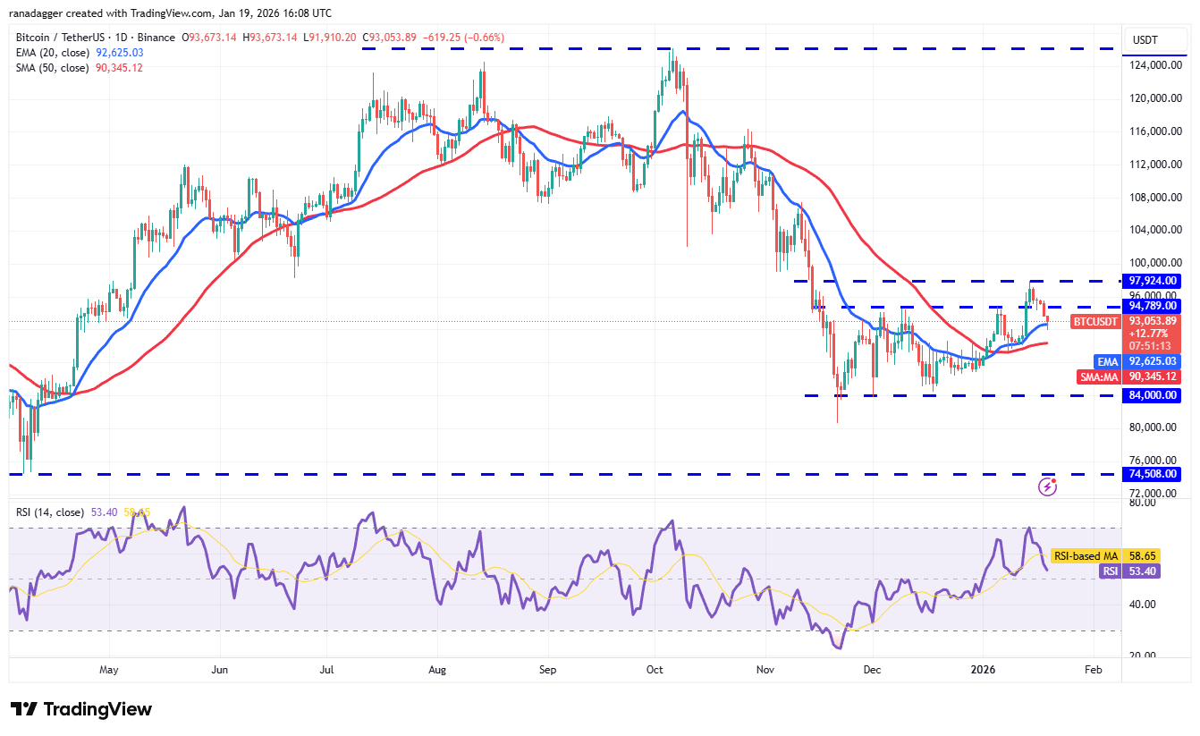 El retroceso de BTC ha alcanzado la media móvil exponencial (EMA) de 20 días (USD 92.625), que es un soporte crítico a corto plazo al que hay que prestar atención.