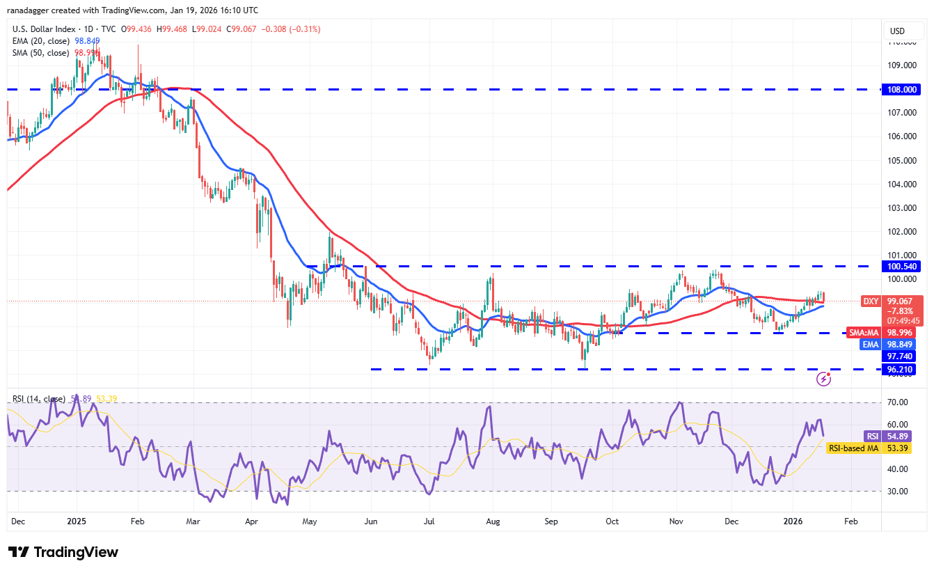 El índice del dólar estadounidense (DXY) subió por encima de la media móvil simple de 50 días (98,99) el martes, pero los niveles más altos están atrayendo a los vendedores.