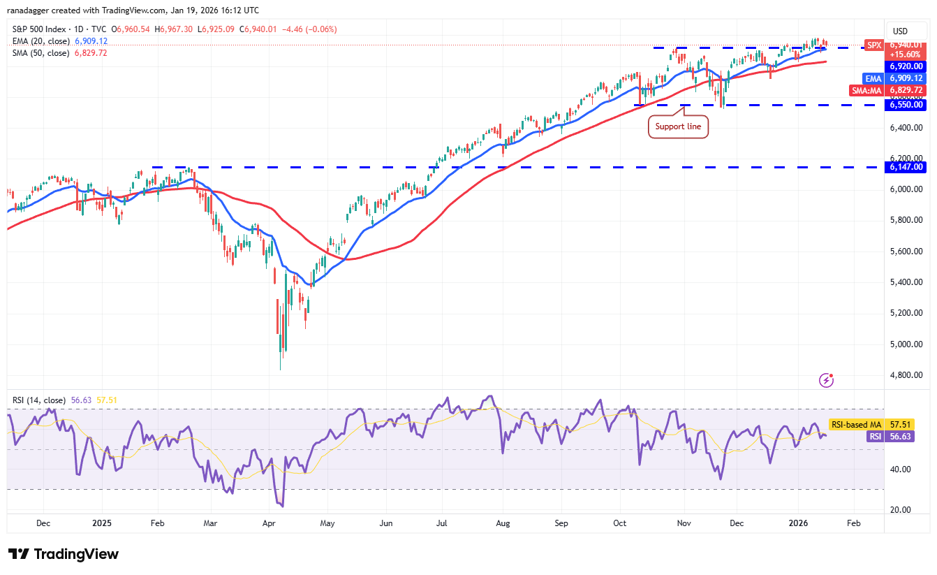 La primera señal de debilidad será una ruptura por debajo de la media móvil exponencial de 20 días (6.909). Eso sugiere que los alcistas están recogiendo beneficios. Se espera que los compradores defiendan la media móvil simple de 50 días (6.829), ya que una ruptura por debajo de ella podría profundizar la corrección hasta 6.720.