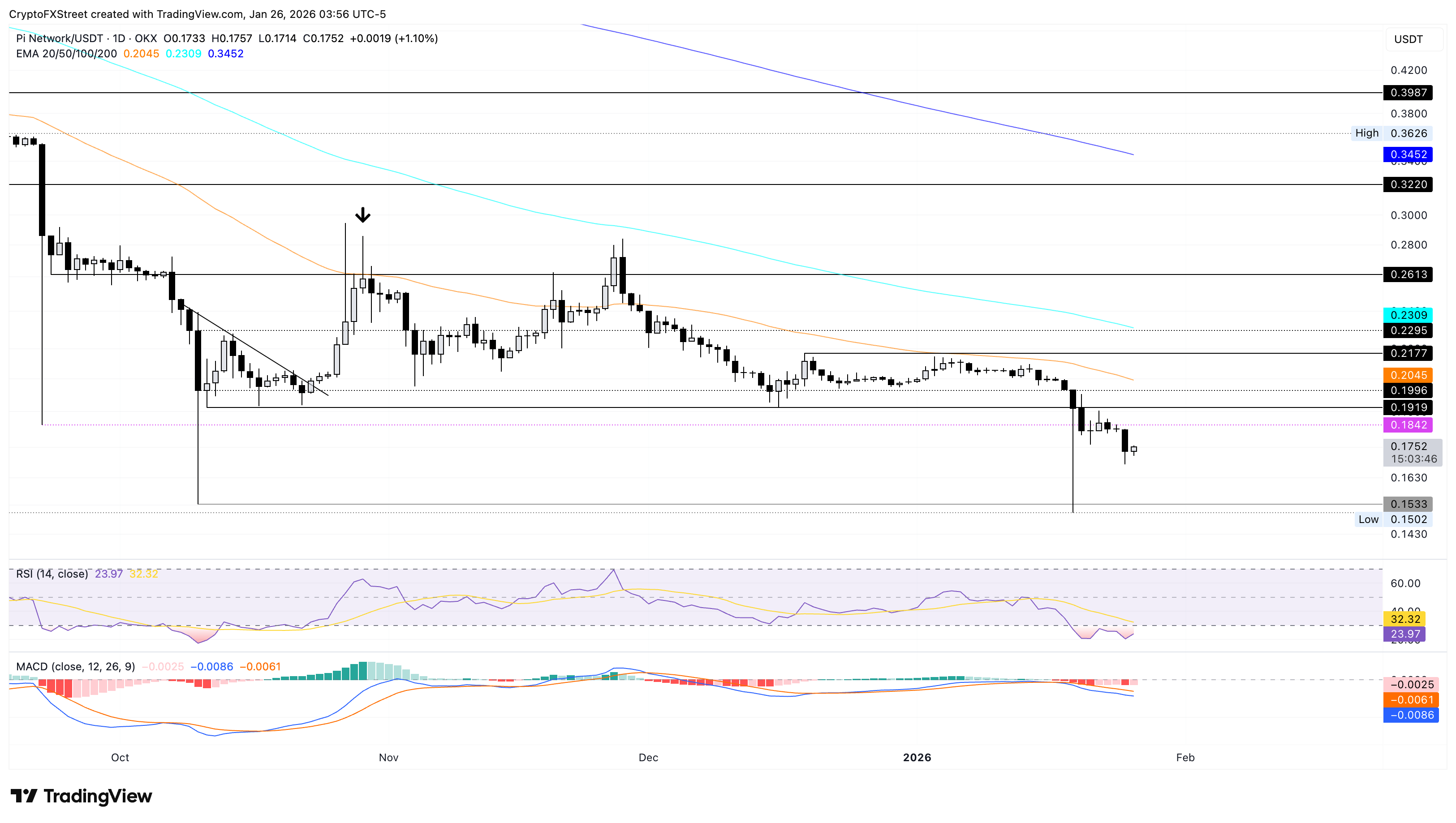 Pi Network (PI) se mantiene por encima de 0.1700$ en el momento de la publicación el lunes, estabilizándose tras la caída del 5% del domingo. El token PI sigue bajo intensa presión en medio de condiciones adversas al riesgo en el mercado de criptomonedas más amplio y más de 1.3 millones de entradas de tokens en intercambios centralizados (CEX) en las últimas 24 horas.