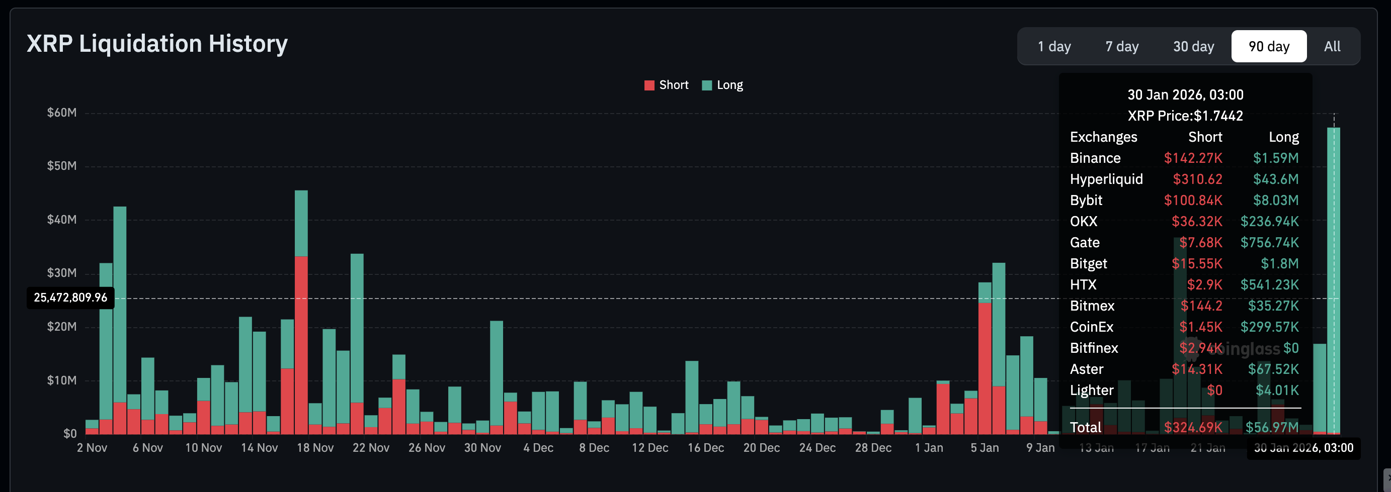 Datos de liquidación de $XRP | Fuente: CoinGlass