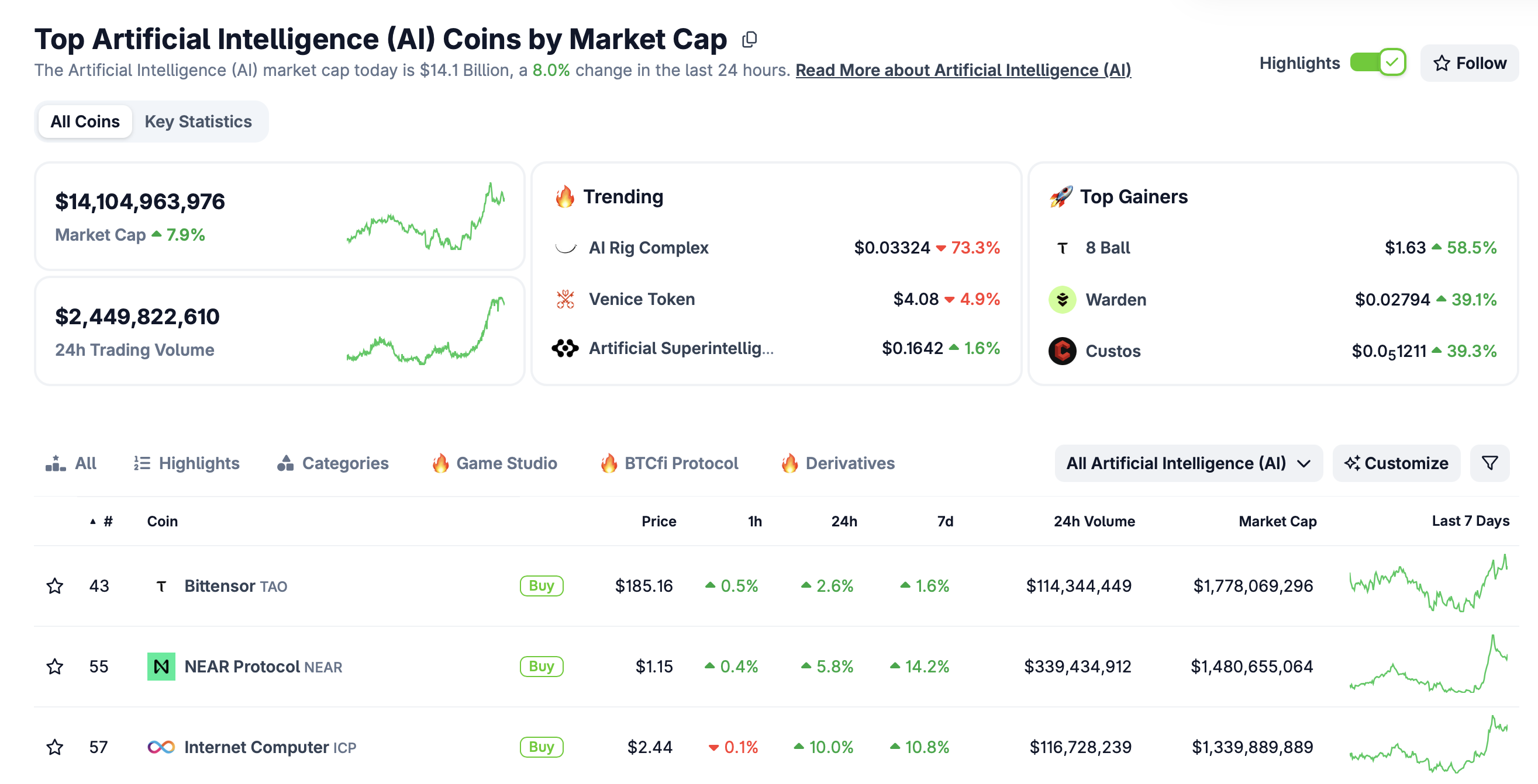 El segmento de IA en criptomonedas ha registrado ganancias modestas en las últimas 24 horas, con su capitalización de mercado aumentando más del 8% a 14.1 mil millones de dólares. Los tokens relacionados con IA como Internet Computer (ICP), PIPPIN, Unbase (UB) y GRASS han subido en cifras de dos dígitos, según CoinGecko.