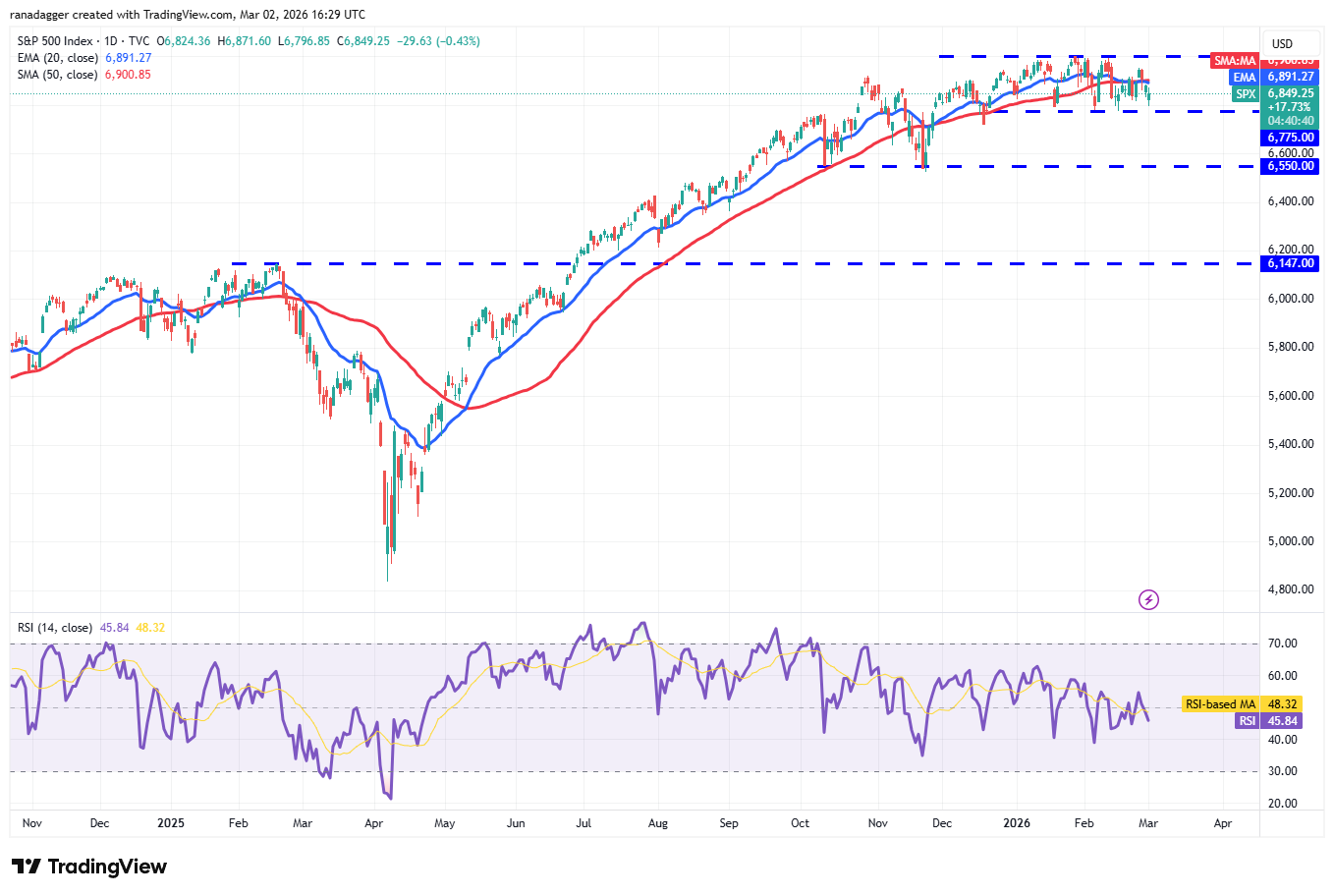 Cuanto más tiempo permanezca dentro del rango, más fuerte será la eventual ruptura del mismo. Si el precio baja y rompe por debajo del nivel de 6.775, sugiere que los bajistas han superado a los alcistas. Esto podría iniciar una corrección más profunda hacia el nivel de 6.550.