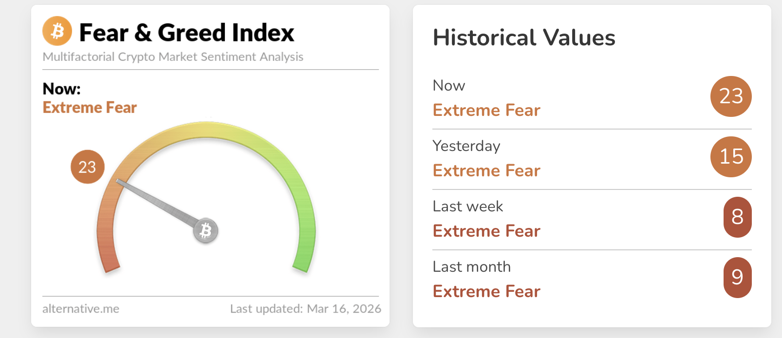 El sentimiento ha seguido mejorando a pesar de la guerra en Medio Oriente, como lo indica el Índice de Miedo y Codicia, que señala 23 el lunes, en comparación con 15 el día anterior y 8 la semana pasada.
