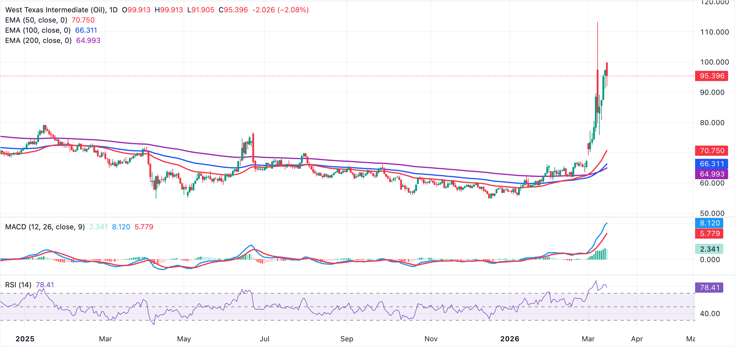 El presidente de los Estados Unidos (EE. UU.), Donald Trump, ha llamado a los aliados de la OTAN a proporcionar apoyo militar para detener el control de Irán sobre el estrecho de Ormuz. La ruta de envío ha puesto en jaque el 20% del suministro mundial de petróleo, ya que el bloqueo iraní sigue en pie. Los precios del petróleo subieron a 100$ más temprano en el día, pero desde entonces han caído a 95$ al momento de escribir.