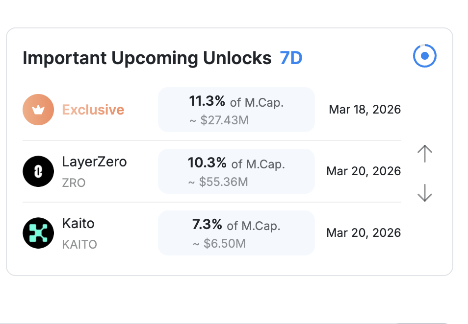 Otros desbloqueos de tokens de interés para los inversores incluyen casi 29 millones de dólares de River (RIVER) el sábado, 6.52 millones de dólares de Kaito (KAITO) el viernes, y 2.71 millones de dólares de Plume Network el sábado.