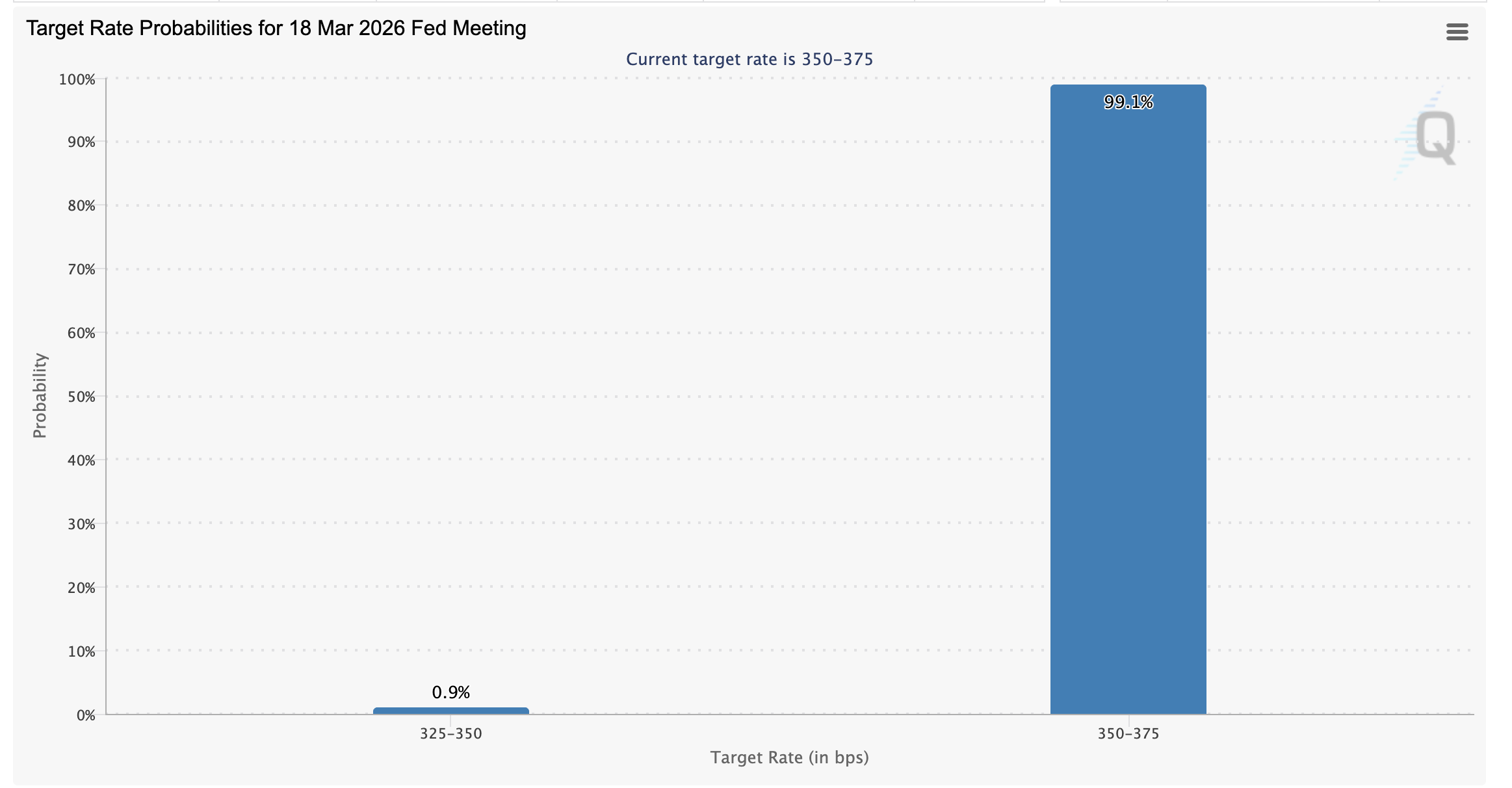 El aumento en los precios de la energía y las preocupaciones sobre el aumento de la inflación han oscurecido significativamente el optimismo por recortes en las tasas de interés de la Reserva Federal (Fed). Según la herramienta FedWatch de CME, los mercados continúan descontando una probabilidad del 99.1% de que el Comité Federal de Mercado Abierto (FOMC) mantenga las tasas de interés sin cambios en el rango del 3.50%-3.75% esta semana. Solo el 0.9% de los participantes del mercado esperan un recorte al 3.25%-3.50%.
