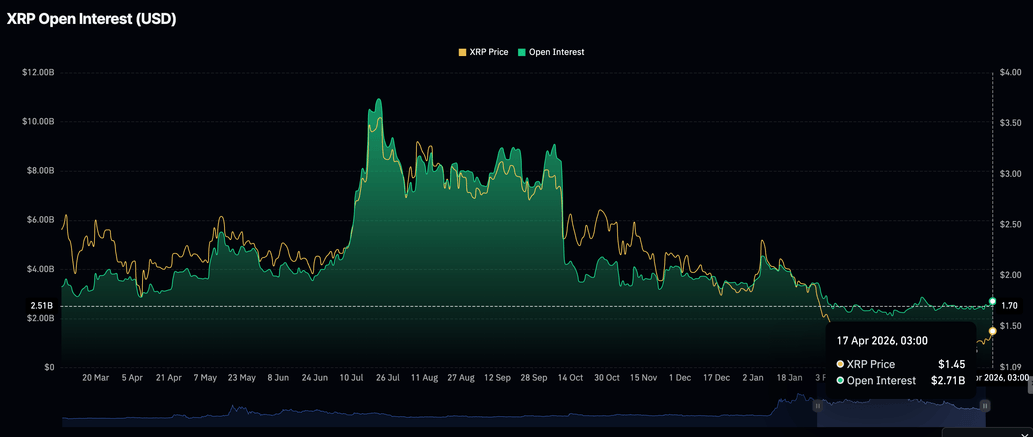 El mercado de derivados de $XRP está ganando tracción ya que el interés abierto (OI), que refleja el valor nocional de los contratos de futuros y opciones pendientes, aumentó a 2.710 millones de dólares el viernes desde 2.580 millones el día anterior.