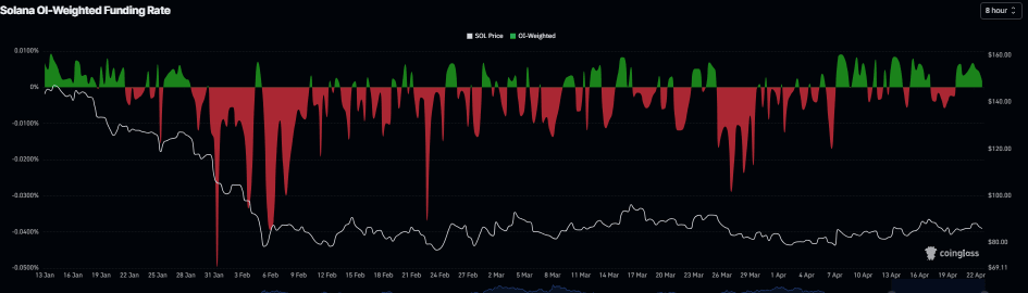 En el lado de los derivados, las tasas de financiación también apoyan un caso positivo. Las tasas de financiación de $SOL se volvieron positivas el lunes y subieron a 0.0016% el jueves, lo que indica que los largos están pagando a los cortos. Históricamente, cuando las tasas se han vuelto positivas y han aumentado, el precio de Solana ha subido bruscamente.