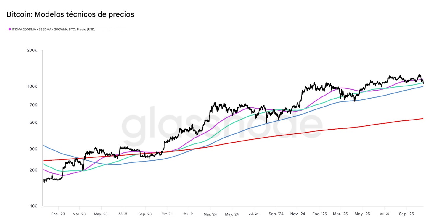 La firma de análisis e investigación de mercado, Glassnode, destaca que bitcoin cotiza por debajo de su media móvil de 200 días (200DMA), ubicada en USD 107.400, y se mantiene apenas por encima de la media móvil de 365 días (365DMA), que ronda los USD 99.900. Asimismo, el nivel intermedio de 111DMA se sitúa en USD 114.700, que actuaría como primera resistencia en caso de un rebote.