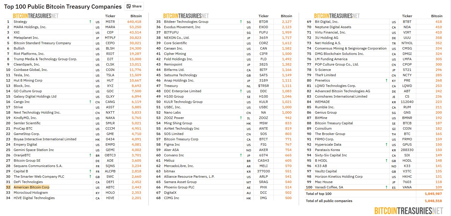 Tal como puede verse en la siguiente imagen, estas empresas ya acumulan más de 1 millón de BTC: