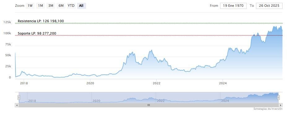 La resistencia a mediano y largo plazo se mantiene en los 126.198 dólares. Mientras, los indicadores de Ei se muestran mixtos.