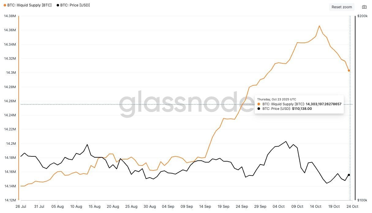 En medio de la corrección del precio de Bitcoin (BTC), es bueno conocer ciertas métricas que nos ofrecen plataformas como Glassnode. La misma ha informado en X que se ha reducido la oferta ilíquida debido al retiro de las carteras de tenedores a largo plazo de 62.000 BTC valorados en cerca de 7 mil millones de dólares. Lo que podría impedir un repunte de su valor.