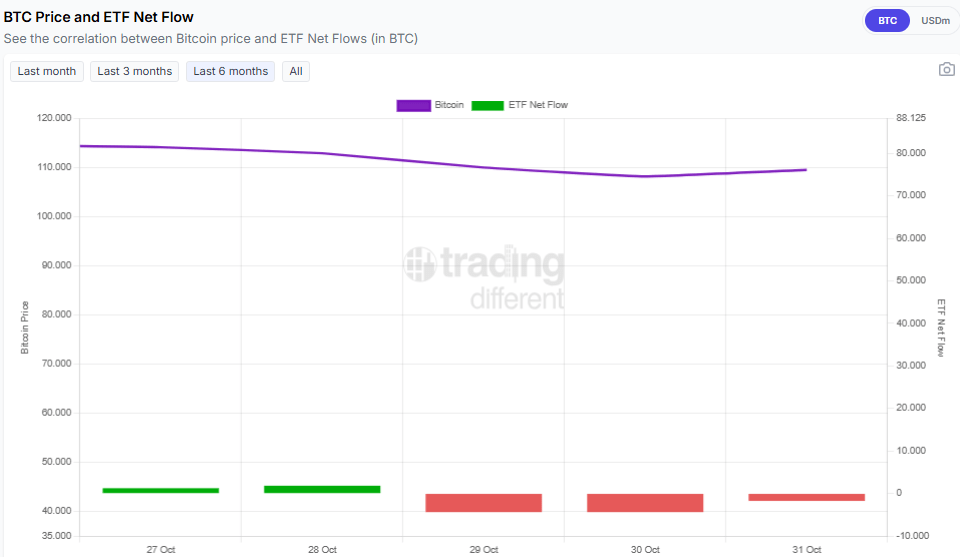 Mientras tanto, en el territorio de Wall Street, los ETF de Bitcoin también presentaron un comportamiento equivalente. Aunque estos productos de bolsa no son ballenas en el sentido estricto, su desempeño y sus efectos en el precio de BTC son similares al de estos inversores.