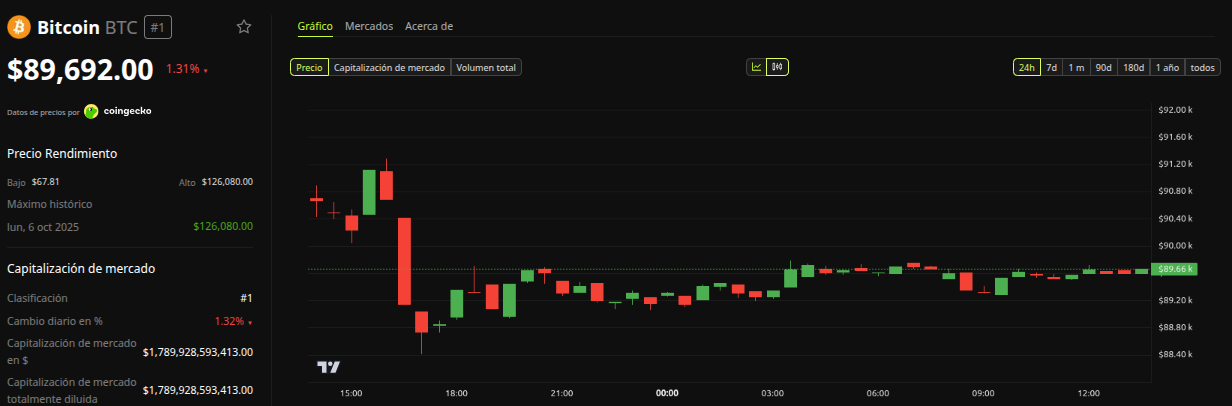 Técnicamente, los niveles por encima de 90,000 dólares mostraban fuerza de oferta, y muchos inversores realizaban beneficios en ese rango. El mercado de derivados también mostraba financiamiento alto, una señal clásica de sobreexposición.