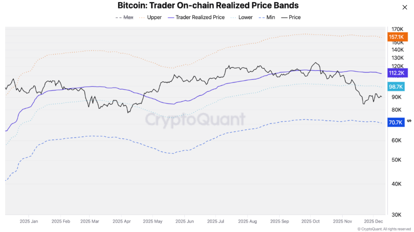 CryptoQuant concluye que, si la presión de venta se mantiene baja, un rebote de alivio podría empujar al Bitcoin de regreso a 99.000 $. Este nivel es la banda inferior de las bandas de Precio Realizado en Cadena de Trader, que es una resistencia de precio durante los mercados bajistas. Después de este nivel, las resistencias de precio clave son 102.000$ (media móvil de un año) y 112.000$ (el precio realizado en cadena de Trader).