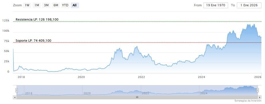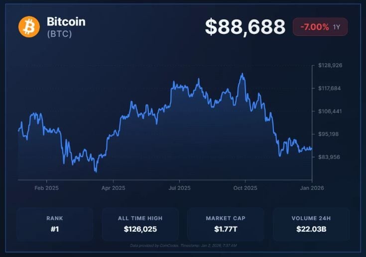 Bitcoin comenzó 2025 cotizando cerca de los 93.000 dólares antes de alcanzar un máximo de aproximadamente 126.080 dólares en octubre. Sin embargo, terminó el año por debajo de su nivel inicial, según datos de CoinCodex. Bitcoin cotizaba cerca de los 88.500 dólares, lo que demuestra que el impulso se ha debilitado a pesar del optimismo de los analistas, que esperaban que 2026 fuera un año de fuerte crecimiento para el activo.
