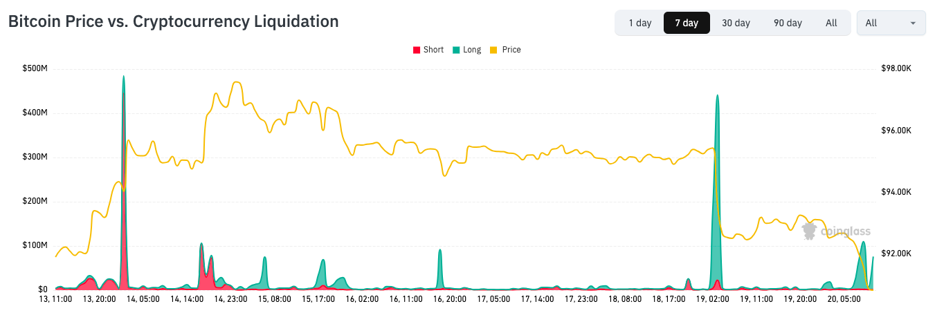 Los datos del libro de órdenes del exchange mostraron signos de pánico durante el día; las liquidaciones alcanzaron los 360 millones de dólares en las 24 horas previas al momento de escribir este artículo, según datos de CoinGlass.