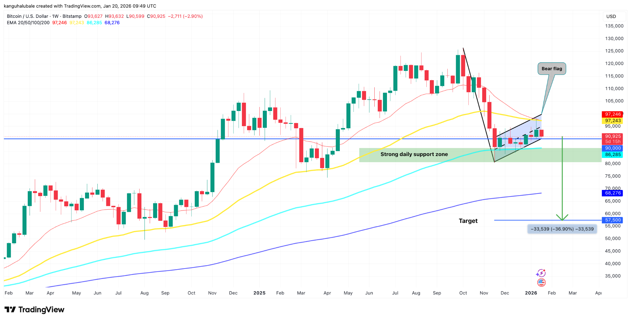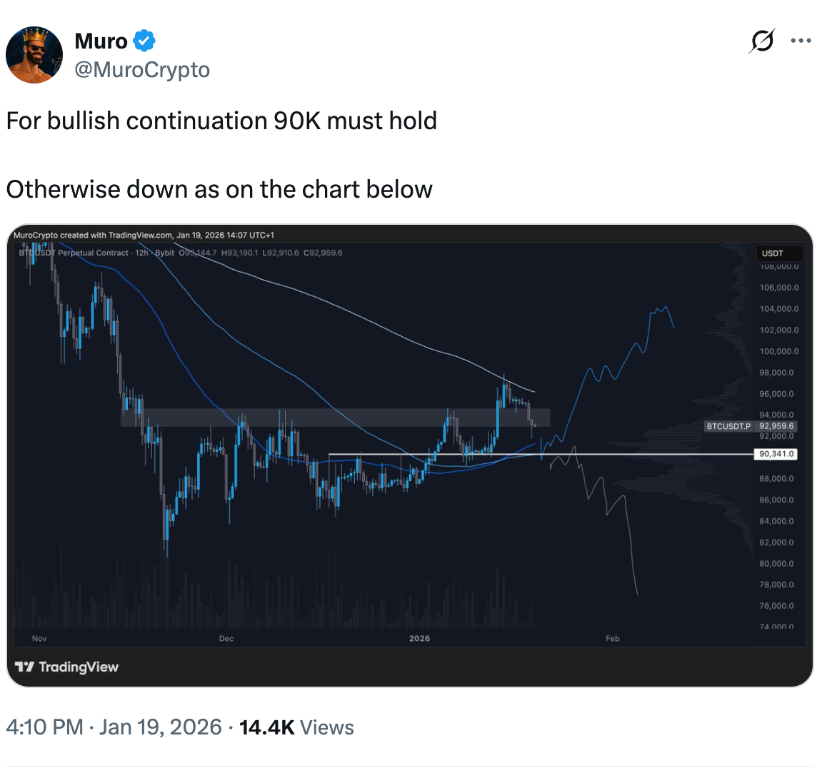 Bitcoin debe mantenerse por encima de los 90.000 dólares para evitar un escenario bajista.