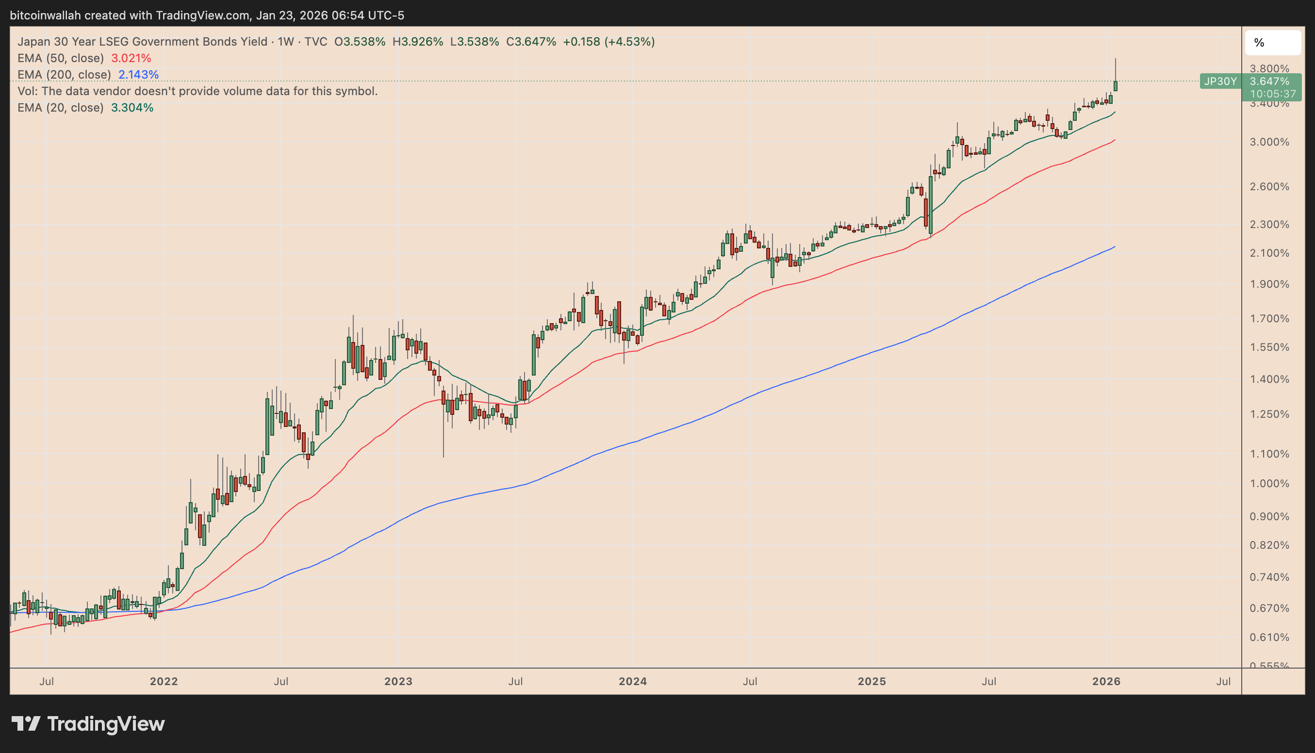 Esta semana, el rendimiento de los bonos japoneses a 30 años alcanzó un récord del 3,92%, ampliando su diferencia con los rendimientos de los bonos a 2 años en 220-325 puntos básicos.